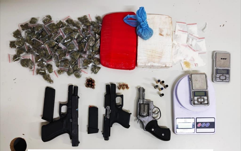 No interior do imóvel, foram apreendidos entorpecentes, armas e munições. Entre o material recolhido estão: