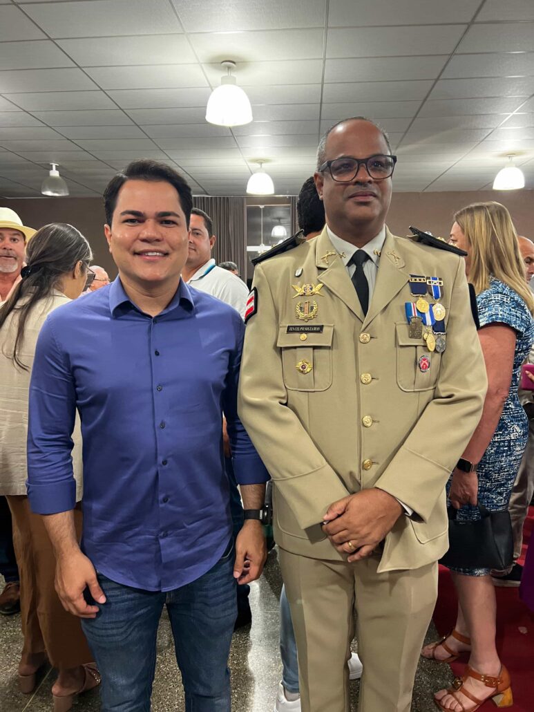Nesta sexta-feira (26), o prefeito de Jussara, Tacinho Mendes, participou da cerimônia de passagem de comando do 7º Batalhão de Polícia Militar, realizada no auditório do Hotel Copa 70, em Irecê. O momento marcou a saída do comandante Flailton Frankles Rosa de Oliveira e a posse do novo comandante, Adriano Souza Dias.